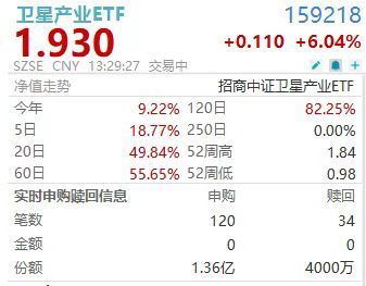 1月6日涨配资,卫星产业彻底爆发!数据显示,截至13时29分,表征板块的卫星产业ETF(159218)涨6.04%领涨全场,前几大权重股方面,中国卫星涨5.24%,航天电子、中国卫通涨停封板,中科星图涨0.97%,臻镭科技涨8.64%,资金热度不减,据Wind Level2实时行情结合均价预估,盘中净流入约1.8亿!